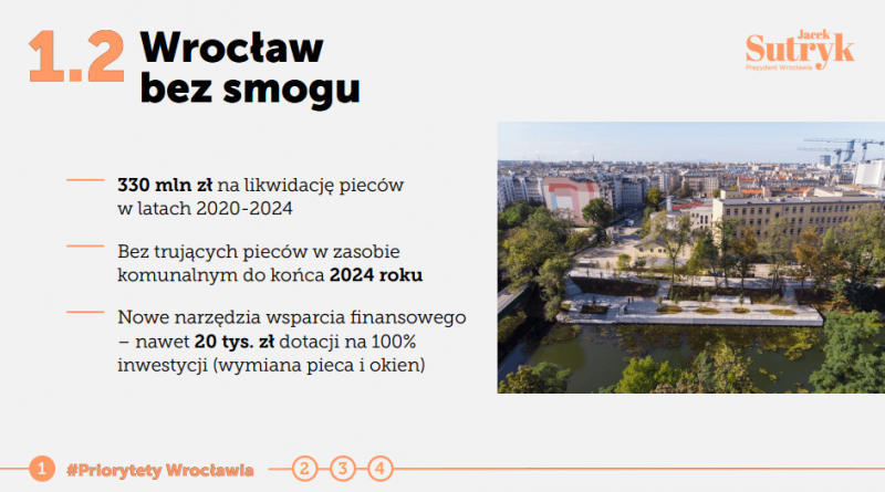 – Uruchamiam program Wrocław bez smogu. Pozbędziemy się trujących pieców w naszych domach i mieszkaniach, zwłaszcza komunalnych – zapowiedział prezydent Jacek Sutryk dodając, że do końca 2024 r. zamierza wydać na ten cel 330 mln zł.