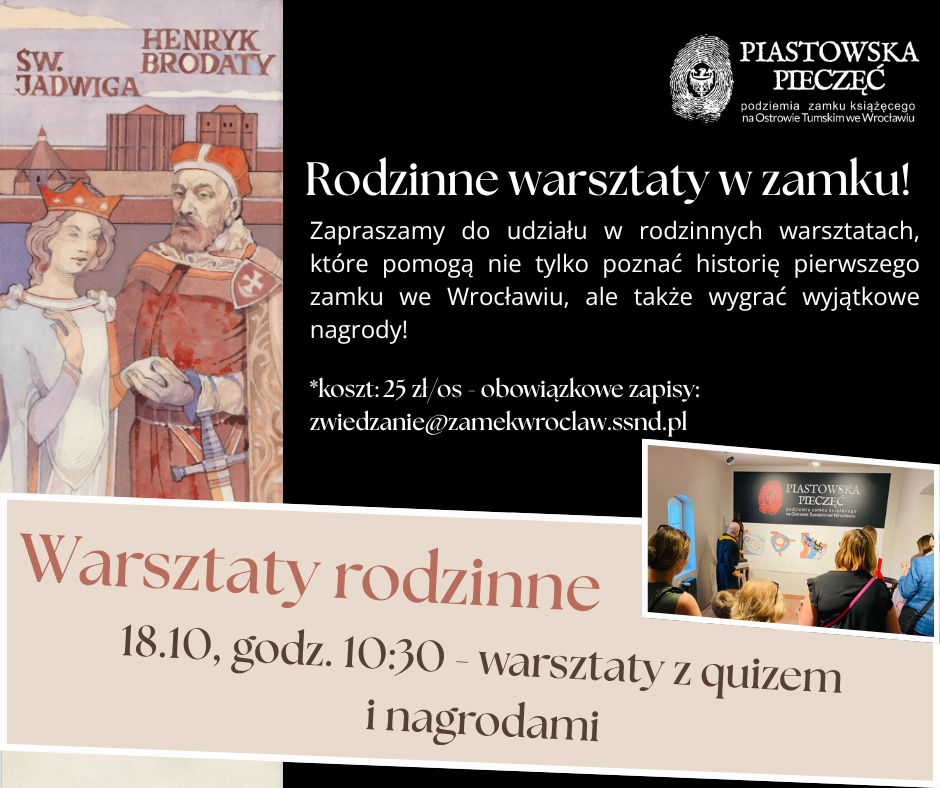 Rodzinna podróż w czasie – odkryj tajemnice piastowskiego zamku! Czy Twoja rodzina lubi historię i ciekawe przygody? Zapraszamy na wyjątkowe warsztaty „Piastowska Pieczęć”, które odbędą się w podziemiach zamku książęcego na Ostrowie Tumskim we Wrocławiu. Tym razem warsztaty będą miały formę quizu.