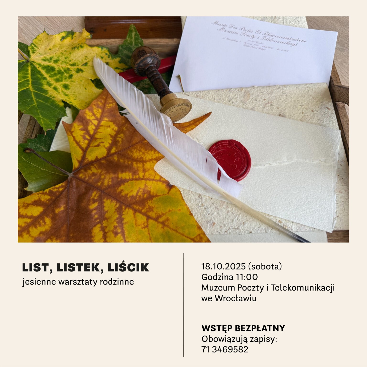 Kiedy myślimy o liście, widzimy zapisaną kartkę, kopertę, znaczek pocztowy, skrzynkę… Ale czy pamiętamy jaka jest historia pisania listów w ogóle? 18 października w Muzeum Poczty i Telekomunikacji we Wrocławiu opowiemy najmłodszym o tym jak, czym i na jakich materiałach pisywano listy oraz jak je doręczano, a także… co łączy list z liściem.