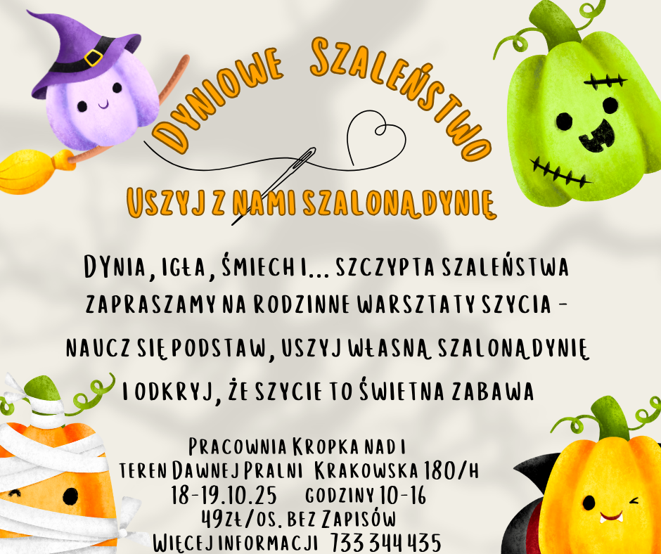 Kropka nad i i Bazar Dawna Pralnia zapraszają na... dyniowe szaleństwo i rodzinne warsztaty – uszyj szaloną dynię.