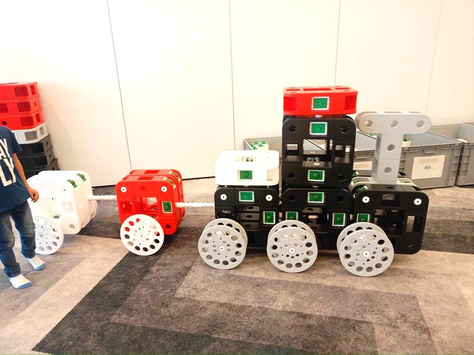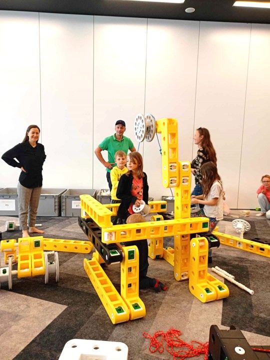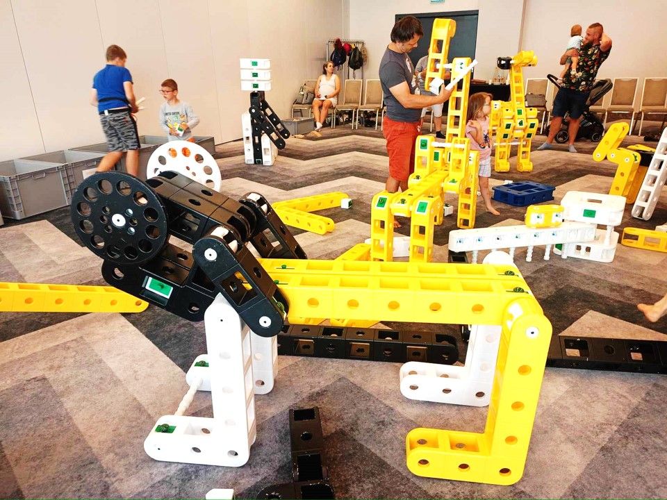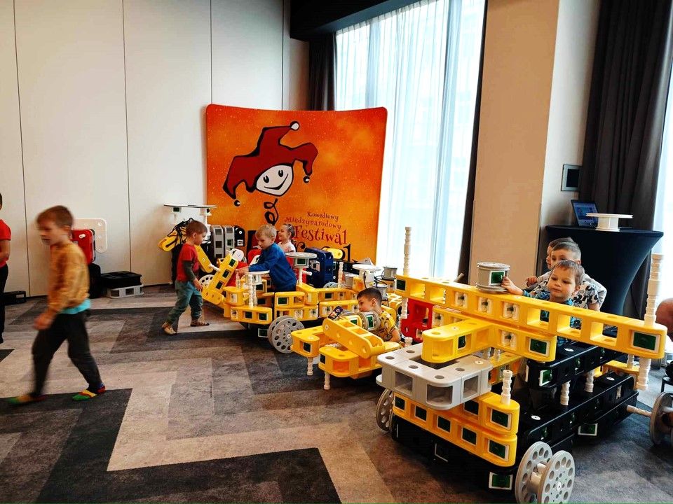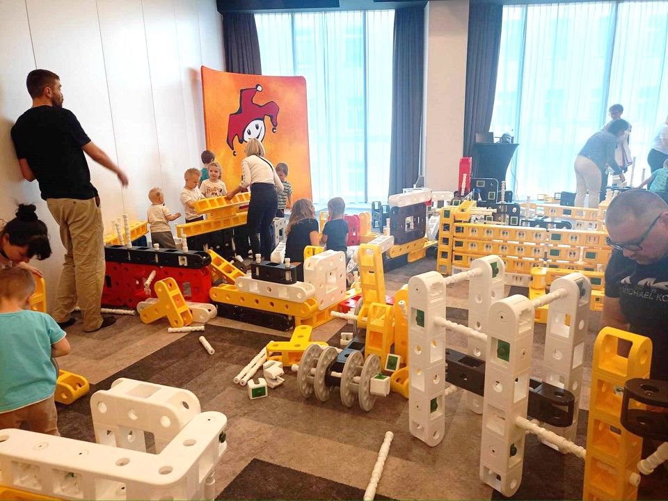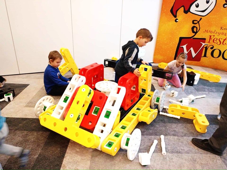 Do zabawy wykorzystujemy gigantyczne klocki inspirowane popularną serią „Technik”. Ich innowacyjna, 15-krotnie większa skala w porównaniu do standardowych zabawek pozwala na tworzenie naprawdę spektakularnych konstrukcji.