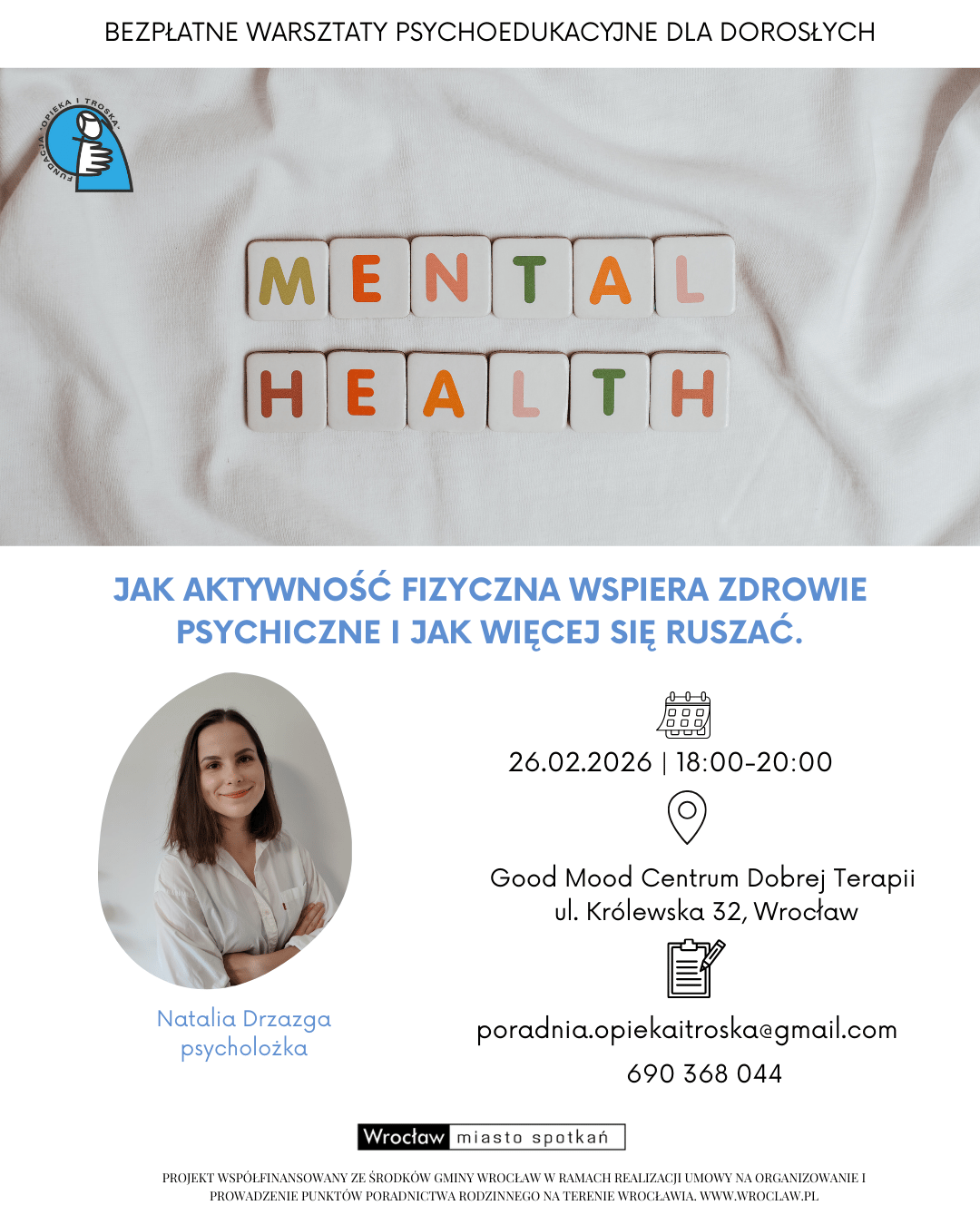Miejsce: Good Mood Centrum Dobrej Terapii, ul. Królewska 32, Wrocław