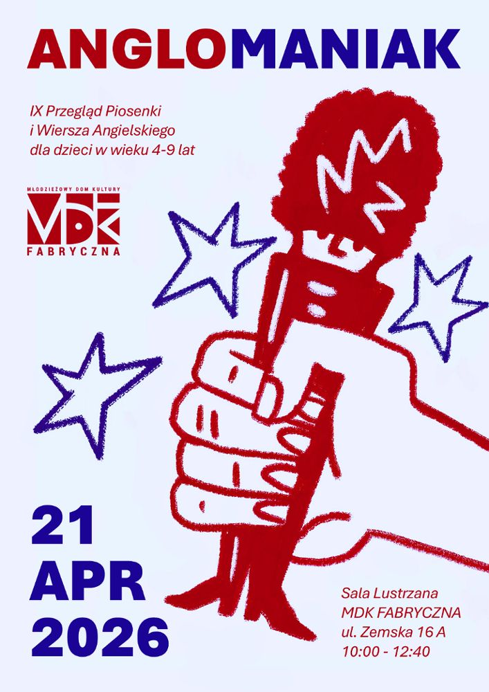 Zapraszamy do udziału w IX edycji Przeglądu Piosenki i Wiersza Angielskiego „Anglomaniak”, skierowanego do dzieci w wieku 4–9 lat.
