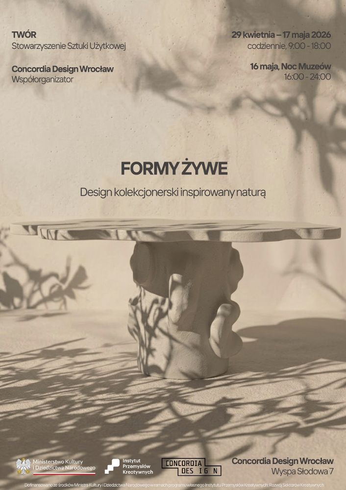 W Concordia Design prezentowana jest wystawa przygotowana przez artystów – członków Stowarzyszenia Sztuki Użytkowej TWÓR. „Formy Żywe” to ręcznie tworzone obiekty na styku rzeźby i funkcji, inspirowane naturą oraz procesem twórczym.