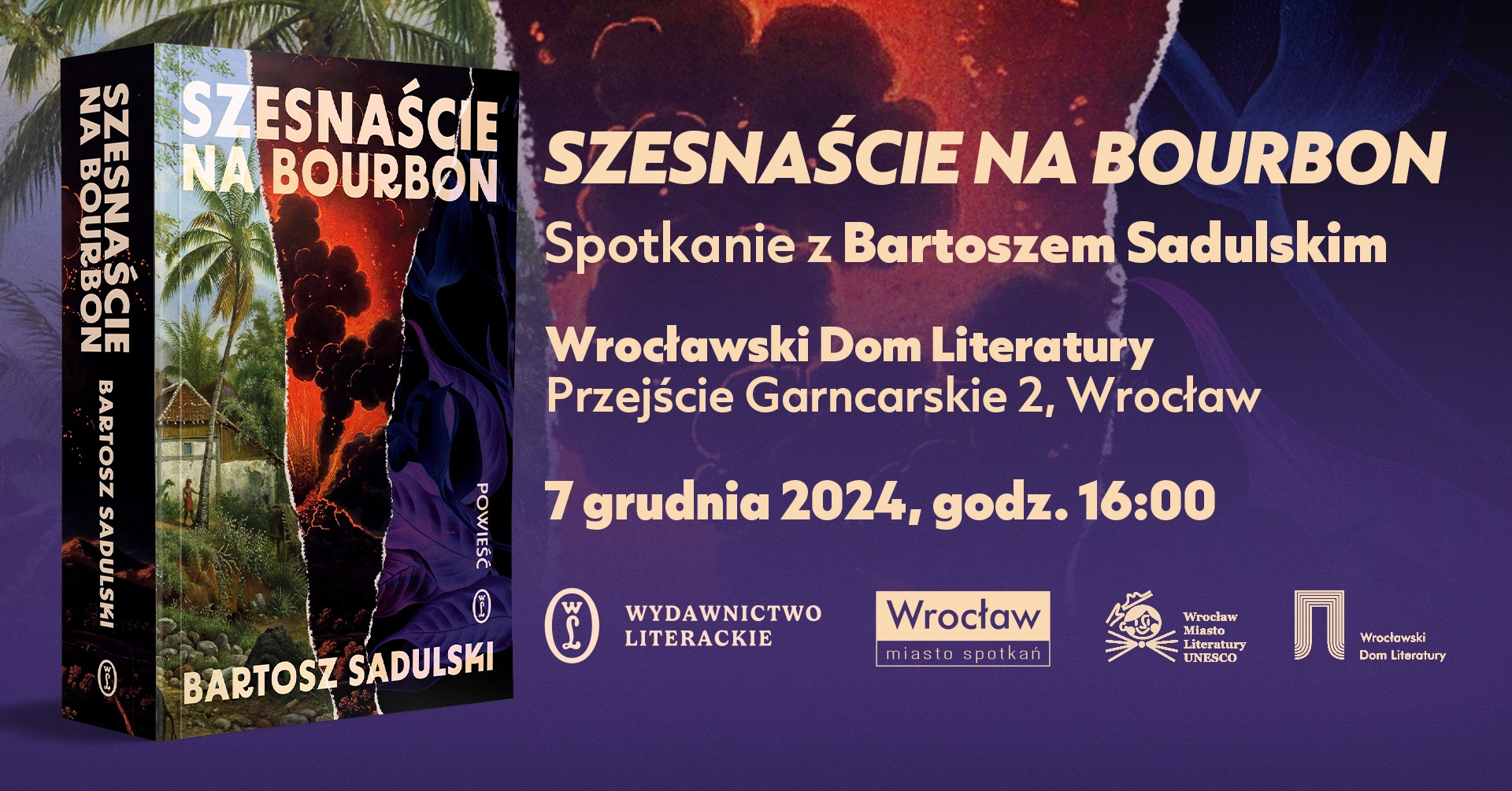Wydawnictwo Literackie zaprasza na spotkanie z Bartoszem Sadulskim wokół jego najnowszej książki „Szesnaście na Bourbon”.