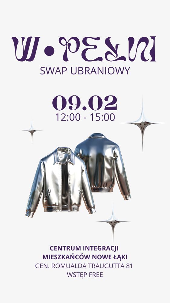 Czas przewietrzyć szafy i dać ubraniom drugie życie! Już w niedzielę, 9 lutego, w godzinach 12:00–15:00 zapraszamy na wyjątkową wymianę ubrań do Centrum Integracji Mieszkańców Nowe Łąki przy ul. Traugutta 81.