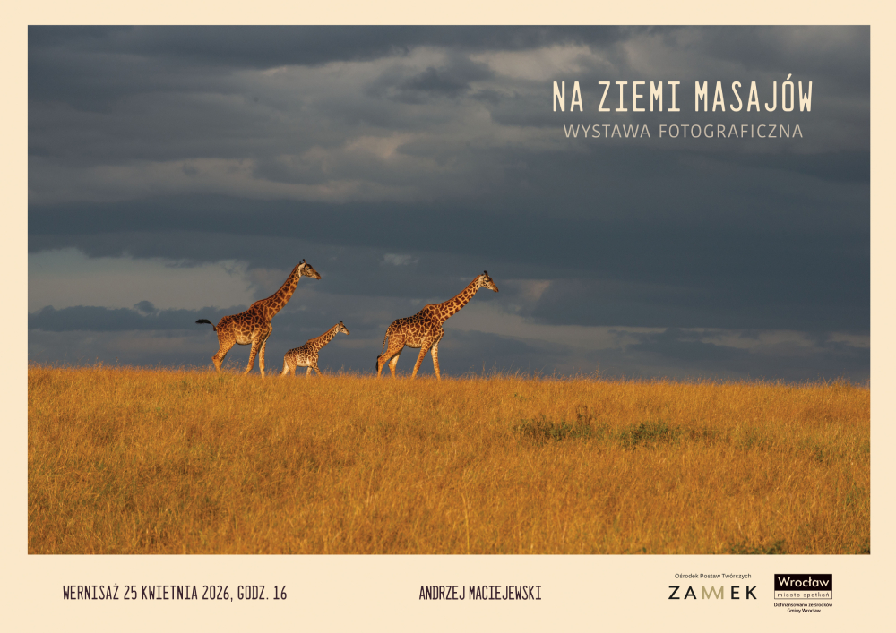 Plakat Na ziemi Masajów – wystawa fotograficzna Andrzeja Maciejewskiego Materiały promocyjne OPT Zamek