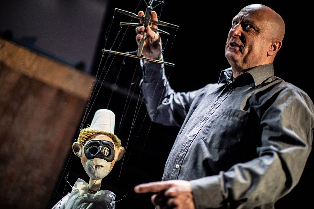 Świadkiem jego rozpaczy i samotności, słuchaczem i powiernikiem staje się marionetka Bazylek. Brunul, nieświadomy paradoksalnych analogii między brutalną rzeczywistością a światem sztuki, zgłębia tajniki technik lalkarskich, ucząc się fragmentów instrukcji: