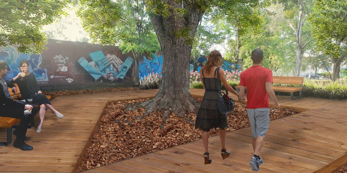 Park kieszonkowy przy ul. Stysia powstanie w ramach programu „Zielona Rewolucja”. Wykonawca położy nowe nawierzchnie, zamontuje drewniane pomosty, ławeczki i kosze oraz trejaże z pnączami.